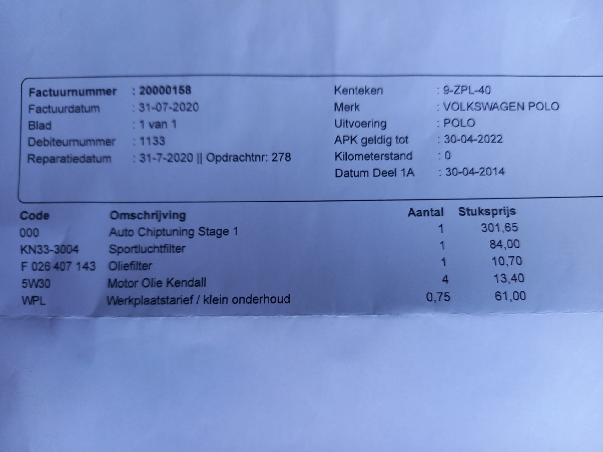- Bij aflevering